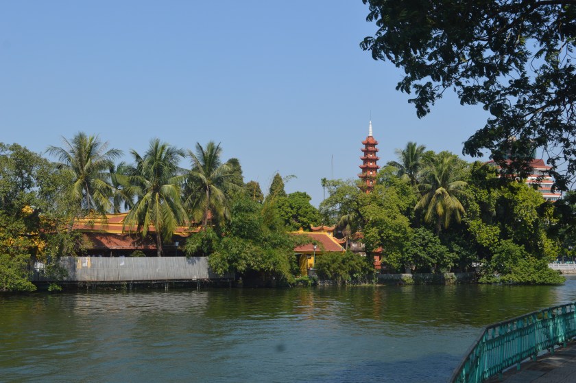 After the first hotel debacle, oh yes there was another, one tune into part three for that epic adventure, we set out to explore the city. Hà Nội, in comparison to Hội An, is massive, naturally because it is the capital city. For those trying to imagine the difference I would describe it by comparing, Chester in the UK to London. So after a week of dodging mopeds and motorbikes, naively believing I was now a pro, the swarm had well and truly upgraded to a maelstrom! At this point even the rare pavements were not safe from riders hedging their bets on a short cut. The same tactics of simply walking out in front of the traffic still seemed to work, though I will admit on a few occasions I remained on the pavement attempting to calculate a good time to dash across. Walking east from our hotel we found the lovely Hoàn Kiếm Lake where we were able to sit down and take in the sights. On a small island in the lake you can see Đền Ngọc Sơn, or The Temple of the Jade Mountain, which made for a lovely view to have some food.
