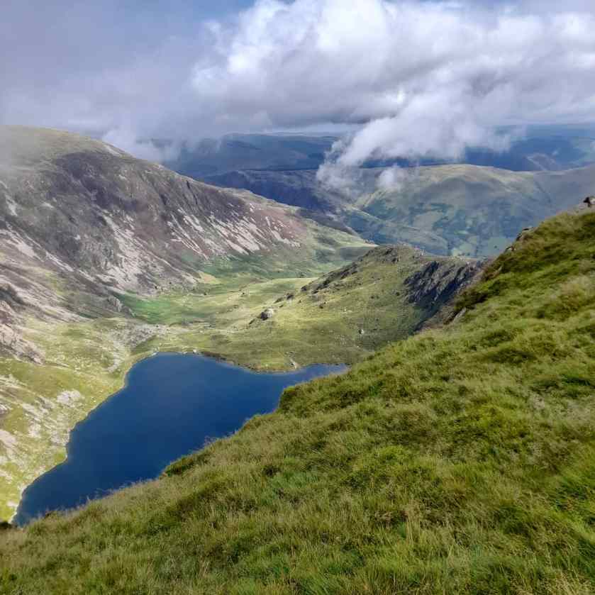 My walk up Cadair Idris started on a cloudy and dull morning, after all, it is in Wales. Hitching a ride to the base of the mountain from the wife. I set off on my 4 hour up and down hike. The start of the journey sees you cross a small river at the base and then follow up waterfalls. The first portion of the walk is mostly staircases through the low wooded areas. Soon you pop out of the woods and the staircases dissolve into a comfortable gradient; at which point the world opens up, and so do the views.
