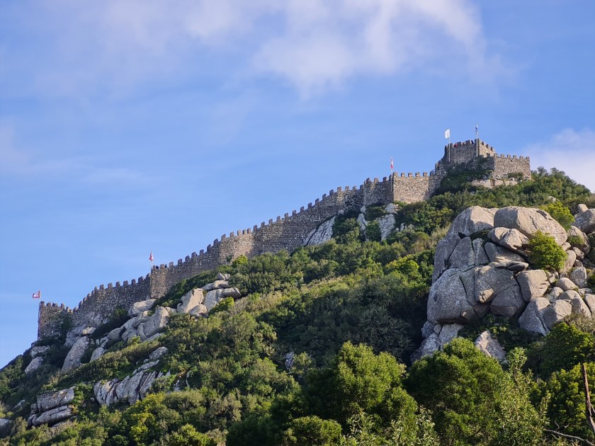 Today I planned to head to Sintra, a town just outside Lisbon that my cousin has kindly suggested for a day out if I had time. https://www.sintraportugaltourism.com/ For those of you who are interested, the link will give you some more information on Sintra. Soon I was on the train hurtling through the Iberian Peninsula to my majestic destination. Being so very eager and slightly out of it due to my illness I got off one stop too early! Luckily for me it was only a 10 minute walk to the station I should have hopped off at and we were soon back on track. A quick pastry later (not the best so I’ll pass on the description) I sat in the town looking up the hill to the Moorish Castle, my destination. Whilst looking I decided on my options, bus up or walk up. I had planned to walk up with my new GoPro’esque camera for my new YouTube channel but it would not be easy considering how I was feeling so the bus seemed like the logical option. Therefore, I began the rather long walk up with camera in hand.