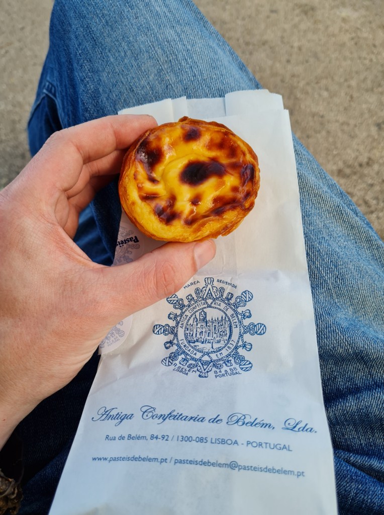 Once back in Lisbon I headed back to the Hostel to drop off some things, quickly charge my phone and then back out to my most frequented destination of the trip, the pharmacy! I managed to explain my ear situation and was sold, and I quote, ‘Mouldable, geriatric ear plugs’ for my flight home as sadly I do suffer with the pressure changes on the best of days, in fact I have passed out on a plane during take off from the pain, but that’s a story for another time. I headed out from the pharmacy on a mission, to get a Pastel de Belém from the its birth place. Jumping on the 728 bus, which both ways was without doubt the busiest and most cramped bus ride imaginable. I arrived and headed in. Pastel de Belém in hand I walked to the park opposite, sat down and proceeded to enjoy my reward. By this time it was around 4pm and I decided to stay in the area to have my meal for the day.