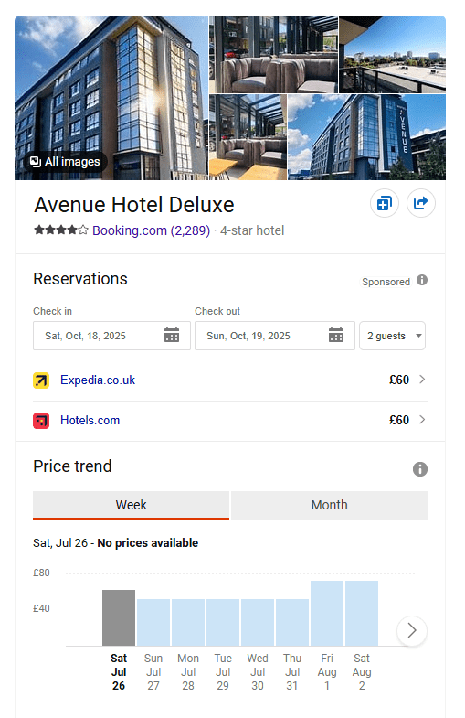Now I need to pick my dates, this is where the £54 flights suddenly rocket up right? Wrong. Because I’m going to go on the 14th of Oct to the 21st clearly to celebrate my 7th wedding anniversary on the 20th. So I pick those dates and sure enough, £56, damn they got £2 more out of me, but the wife is worth it. So I have my flights, now it’s offering me a 4* at £36 per night, was £35 a minute ago! Why? Well I didn’t search it on a private, or incognito web search. Rookie error, now all those little cookies are turning the tables and snacking on my finances. It knows I’m looking to go to Bulgaria, so the price will go up. I’ll also be getting adverts now for trips to Bulgaria for the next 6 months, you’re welcome. So remember to keep your internet search private when you are planning these things, that gives you the best chance of the prices not creeping up on you.