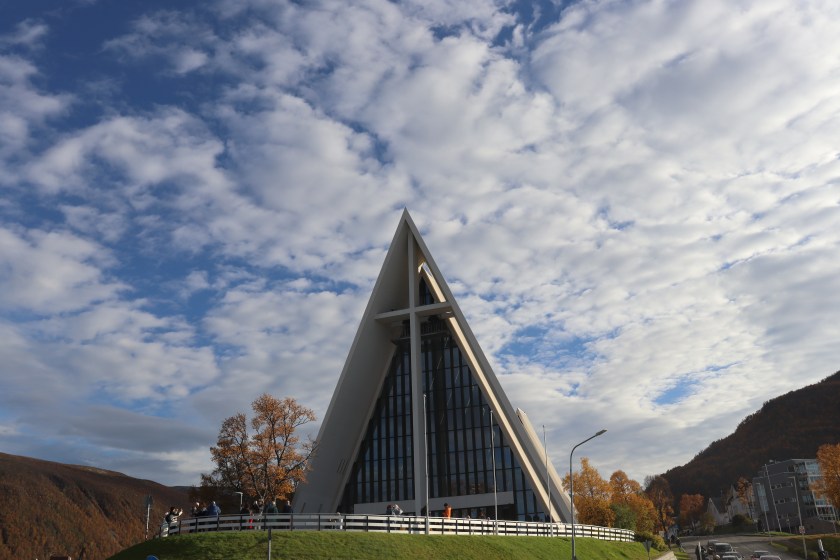 The shop was full of traditional garments, hunting knives, antlers and of course souvenirs. In total we popped into three Sámi shops in Tromsø which was a great treat. Continuing around we went to Tromsø cathedral and other shops. One of which had a small cinema room showing a 15 minute film about the Northern Lights which we excitedly watched as our Northern Lights experience was booked for the evening. Once we had taken in our fill of shops there was only one thing to do; visit the most northern McDonald’s in the world! In fact there was a couple of ‘most northern in the world’ in Tromsø, McDonald’s for one and Hard Rock Cafe for enother. I even saw a Burger King and took a photo just in case, though later discovered there is one in Sweden just a bit further north! After buying the most expensive single large meal in McDonald’s I have ever seen (which meant we decided to share rather than buy one each), we set off to see the Arctic Cathedral.