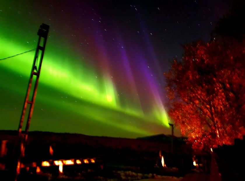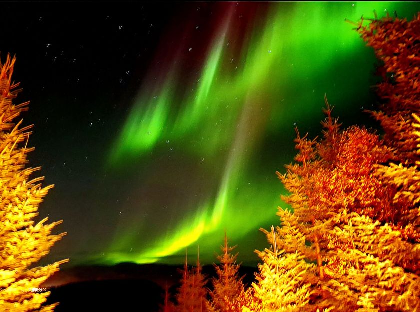 The Northern Lights are caused by Solar wind activity on the Sun. A Mass Coronal Ejection sends charged particles hurtling towards Earth and when it collides with gasses in our upper atmosphere the reaction is one of a melody of colour. Most people will see Green, though depending on how strong the Aurora is you can see, Red, Yellow, Blue and Purple. The difference in colour depends on the gas in the atmosphere is is reacting with. Green and Yellow are caused by Oxygen, Blue and Purple by Nitrogen with Red caused again by Oxygen at a height of around 150 miles. What occurs, with the science set aside, is a glorious dance of colour in the night sky.