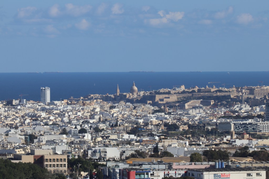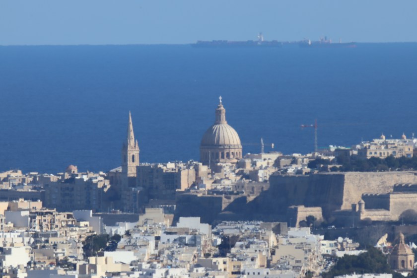 Once I had finished at the cathedral I decided to enjoy the sun some more and headed to the walls of the city looking back toward Valletta. The weather was so clear you could see Valletta very easily. Whilst taking lots of photos of the views a tour guide saw me with my rather oversized telescopic lens and stopped his tour to tell me to point the camera toward Sicily. I did exactly that and a vague outline appeared. Slightly bemused I asked what it was and he told me it was Mt Etna! He stated around twice a year the weather and view are clear enough to see the volcano from Malta and I must admit I didn’t quite believe him. Mt Etna, according to Google Maps was 133 miles away! So I took as many photos as I could in the general direction of Sicily and figured I would see what I could when I returned home. I can say for sure there is something that resembles a mountain in the picture below, I’ll leave you to decide if it is indeed Etna.