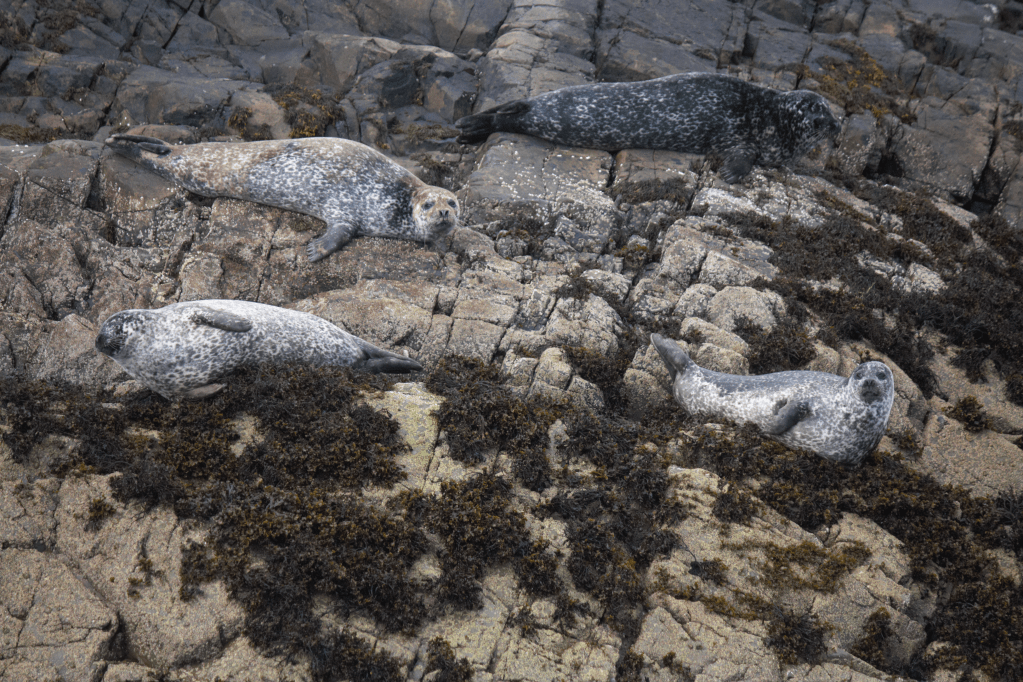 Some Seals basking in the sun on a small island off the Isle of Skye.